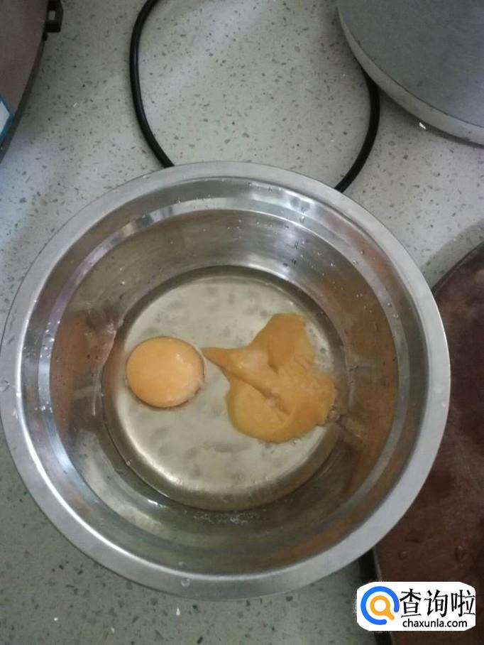 把鸡蛋用清水洗一遍,然后把鸡蛋敲在碗里。