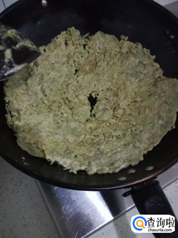 转小火,用铲子把锅里的羮快速铺平,尽量越铺越薄最好。