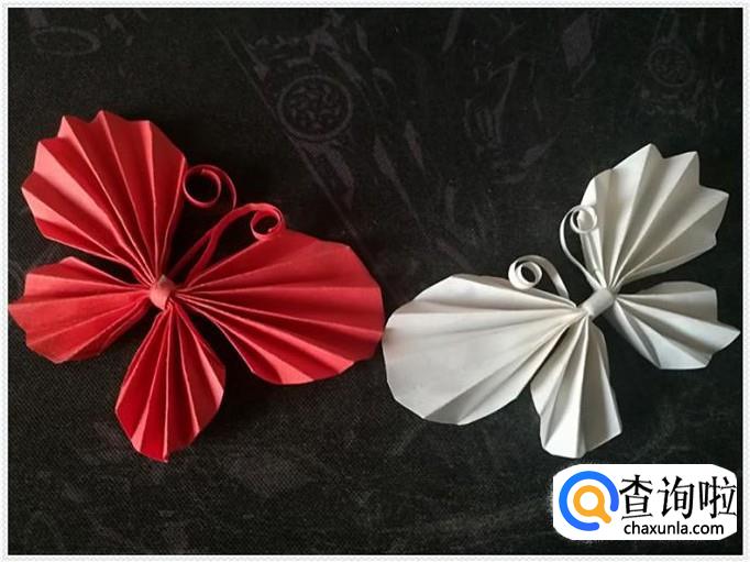 很快,用彩纸折漂亮的扇纹蝴蝶就做好了。