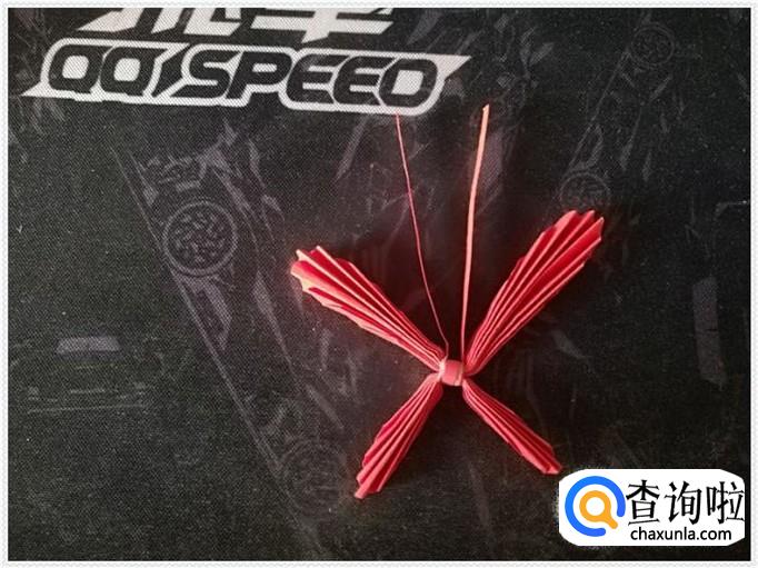 把蝴蝶的触角用锥子头卷一下,向外打卷即可。如图所示。