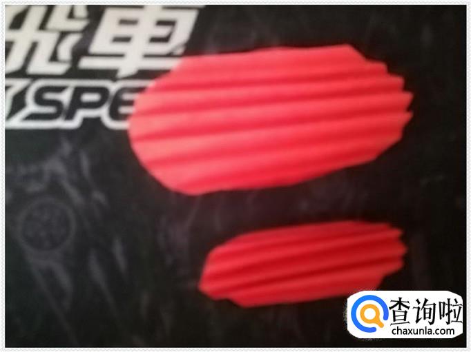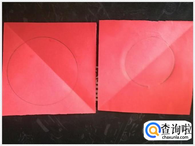 把两个圆分别对折,按照折痕对放,在把触角试放下看合适不,如图所示。