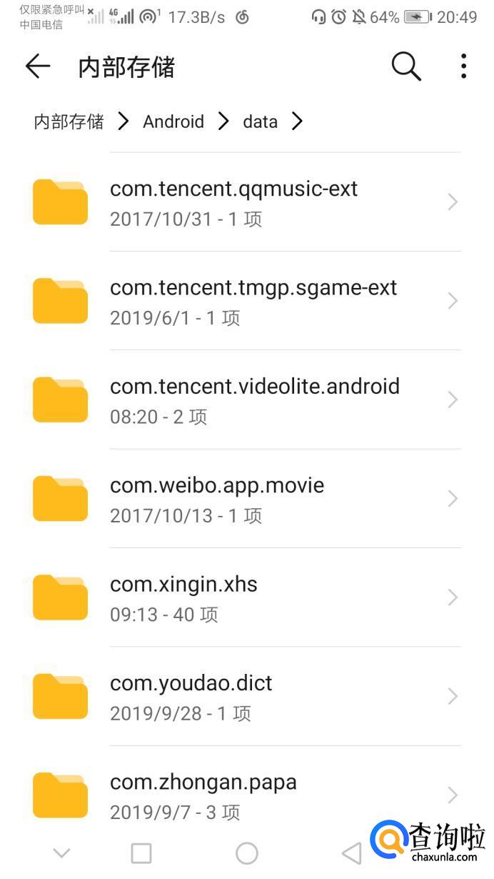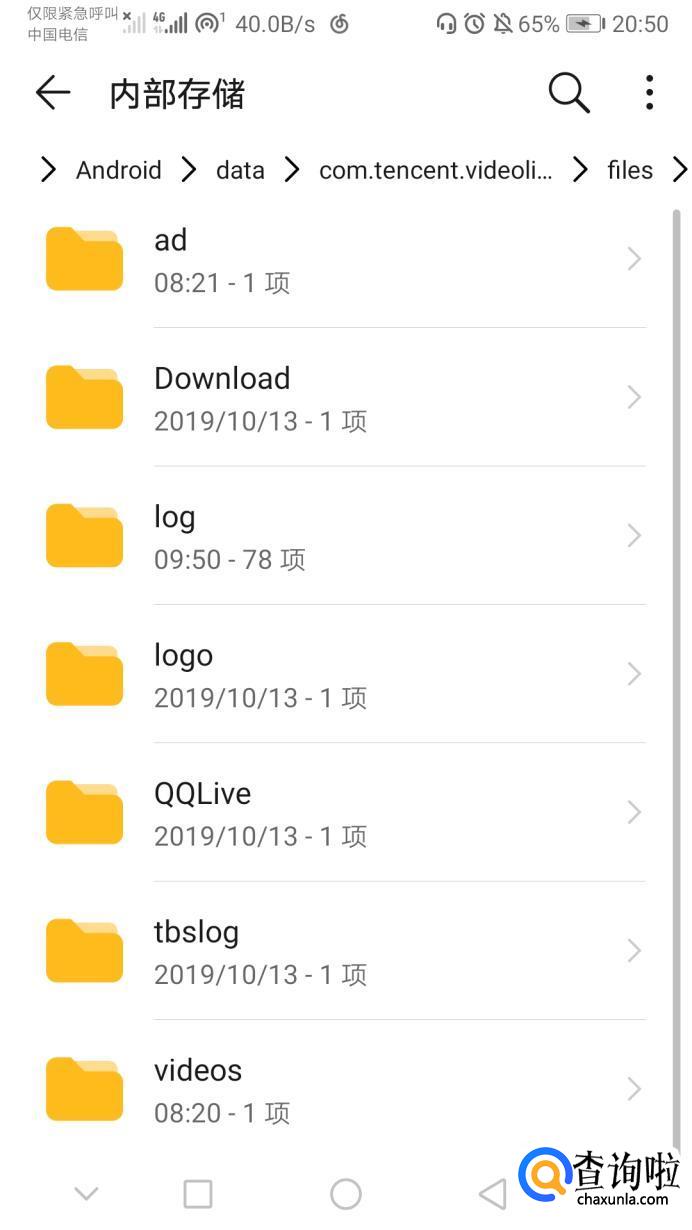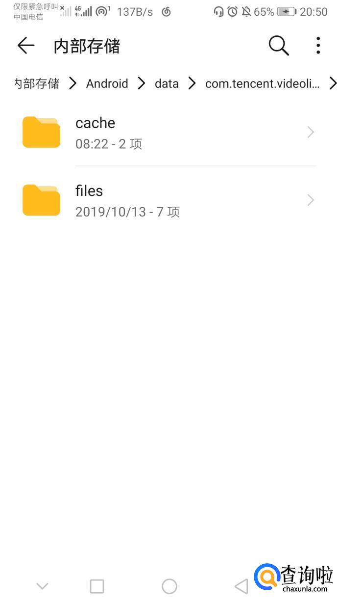 然后下滑找到腾讯视频的文件夹,腾讯视频文件夹的名字是com.tencent.qqlive,然后再选择files。