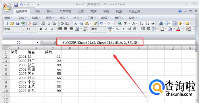 原函数:=VLOOKUP(Sheet2!A2,Sheet2!A1:B10,2,FALSE)
