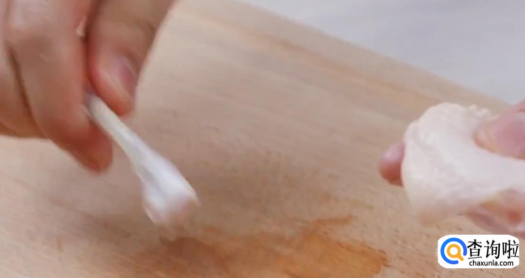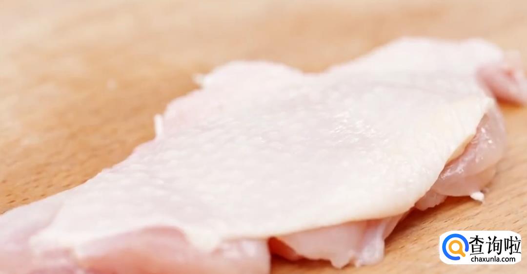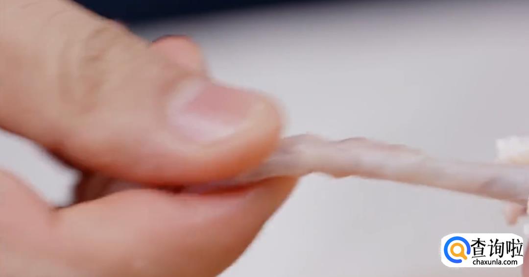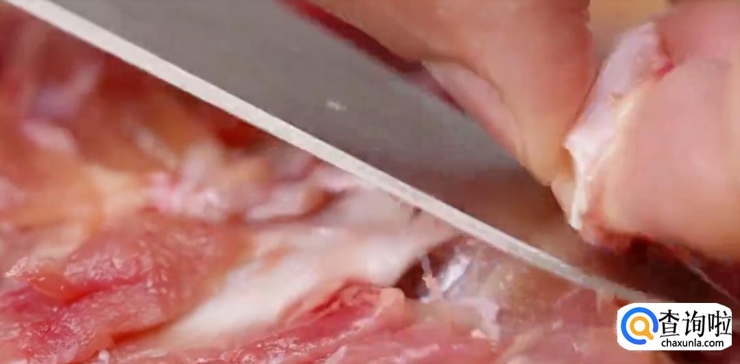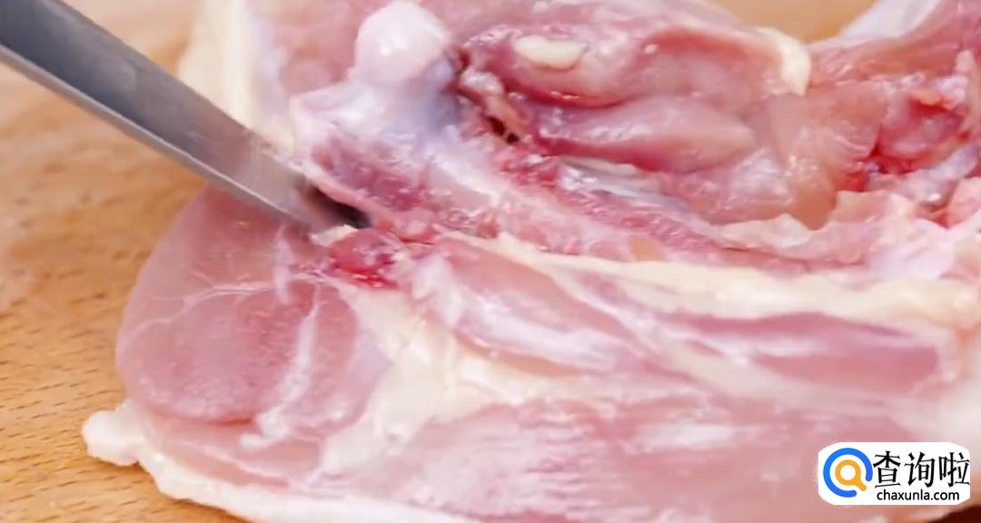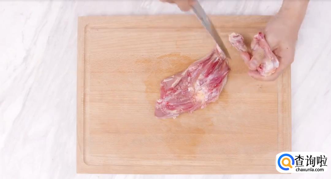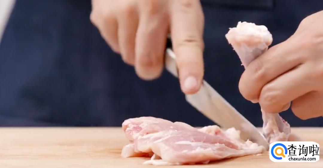 提起鸡腿,剔除鸡骨。