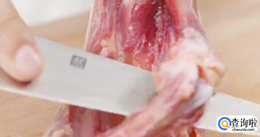 从关节处沿着骨头两侧切开。