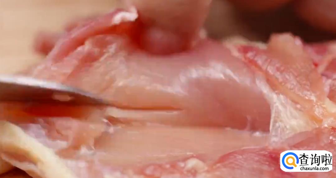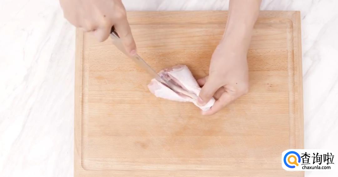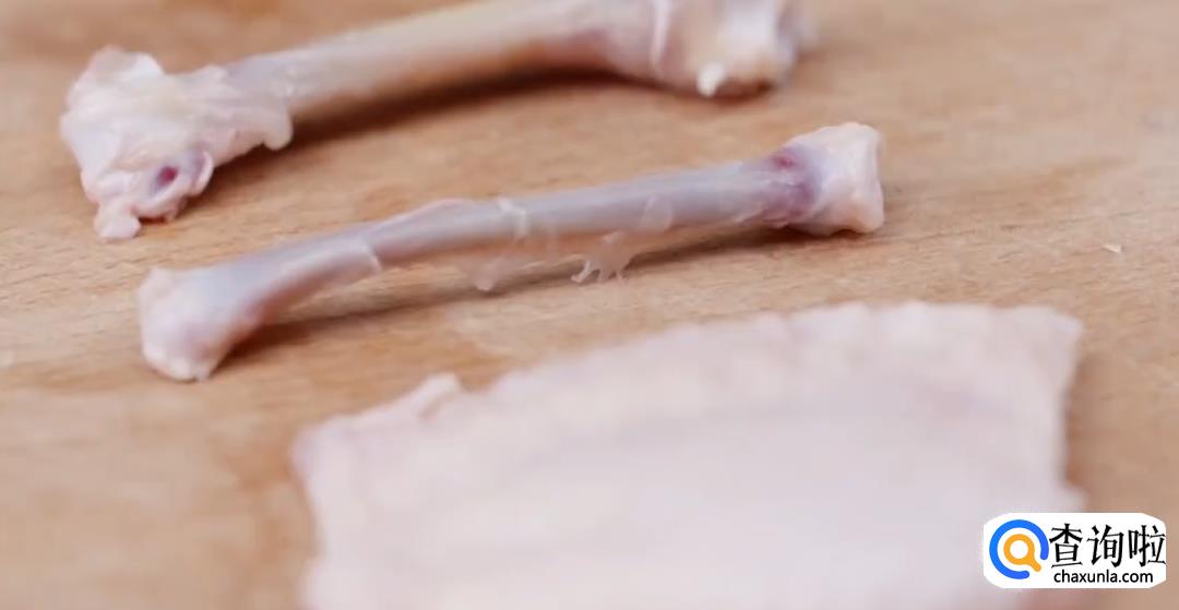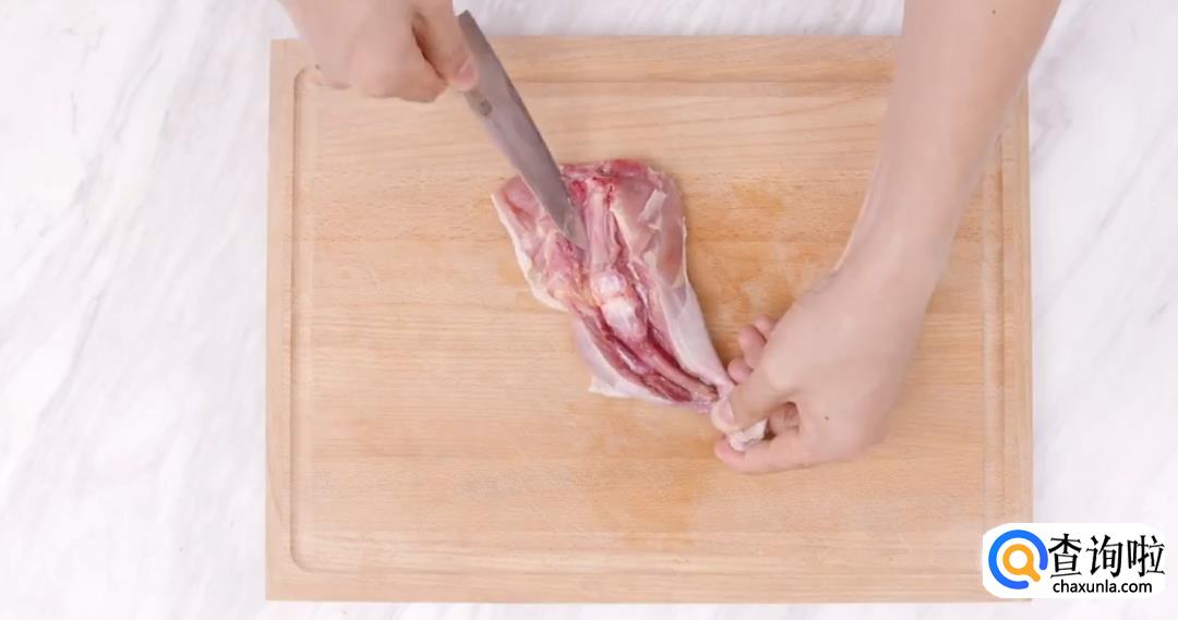 从膝关节处提起,剔除鸡骨。
