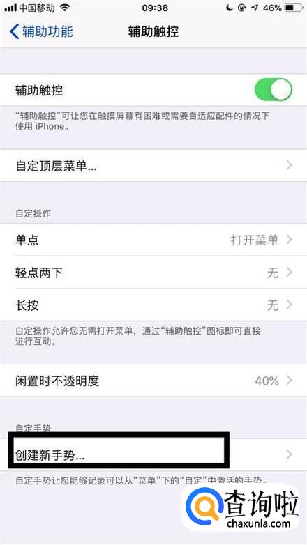 点击创建新手势,可以设置我们想要的小白点手势。