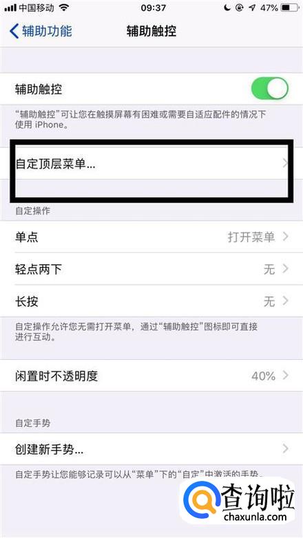 如果你想要设置小白点的功能,可以点击自定义顶层菜单。