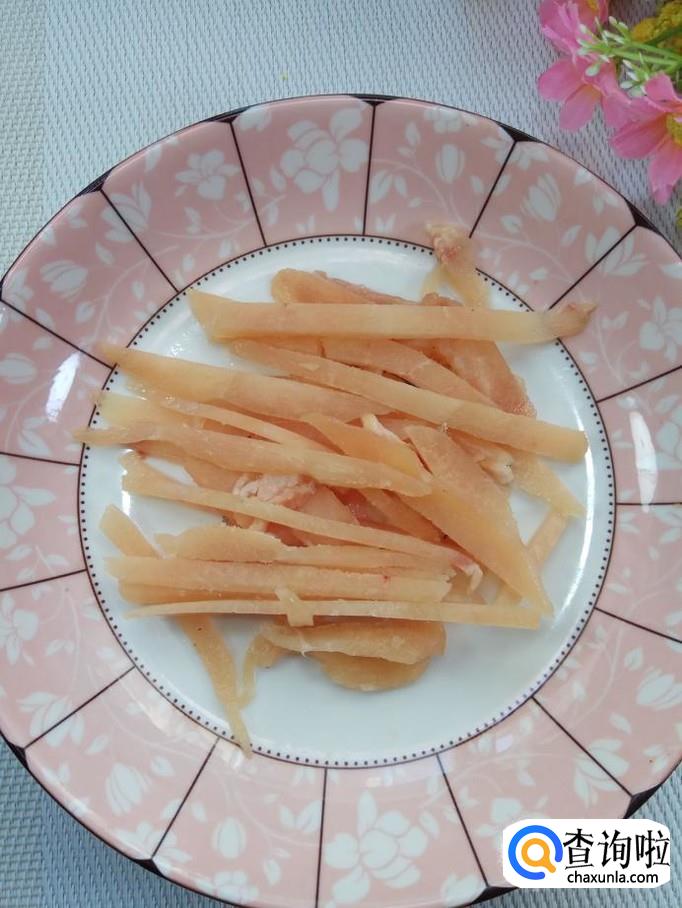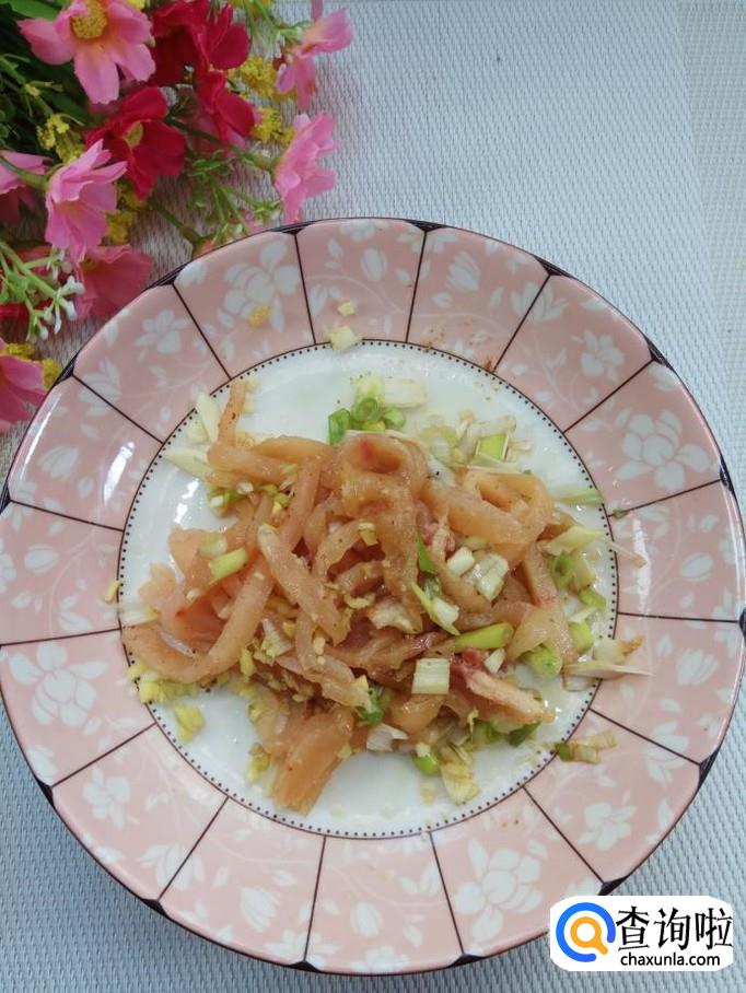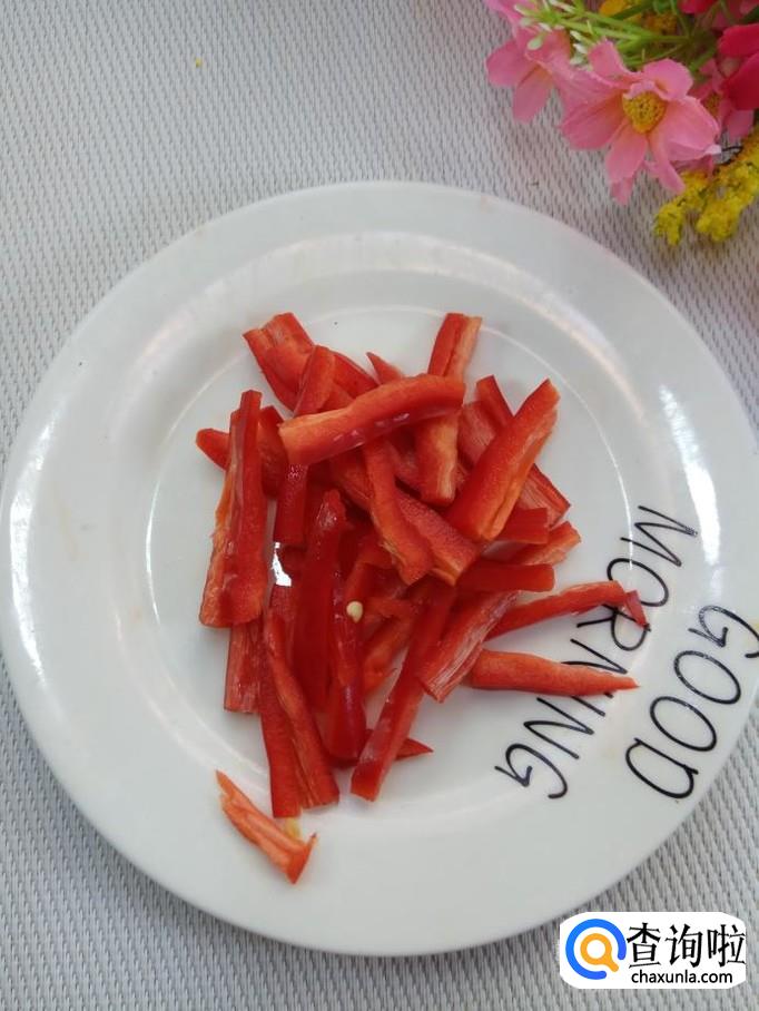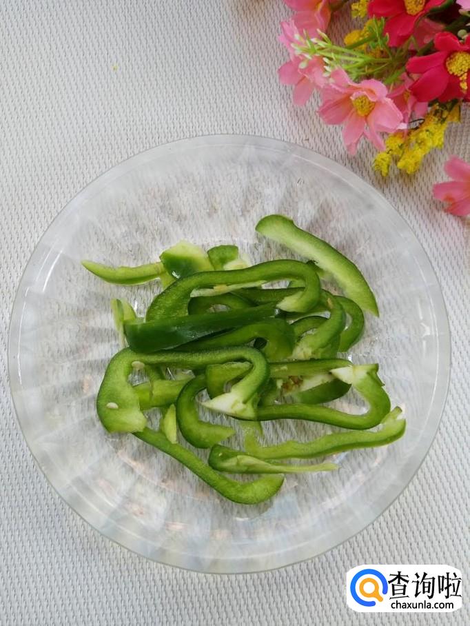 将鸡胸肉切成条,青椒和红椒切成丝,这种切法比较容易炒熟,特别容易入味。