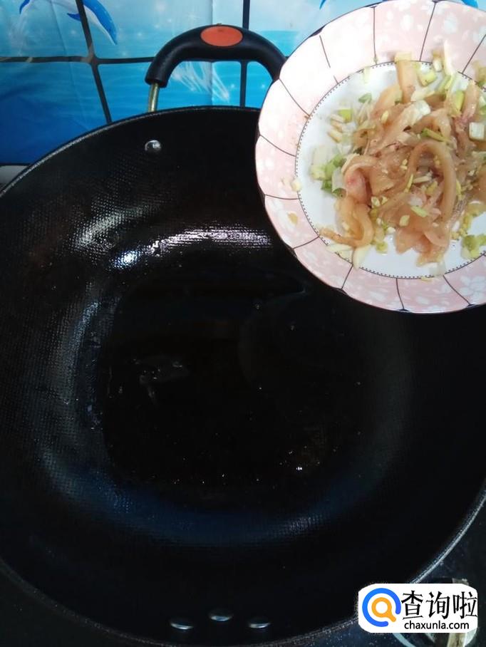 炒锅中放入适量油,油热后,将鸡胸肉放入锅中炒香。腌过的鸡胸肉,不用再放其他调料,看到鸡胸肉变色,就差不多。