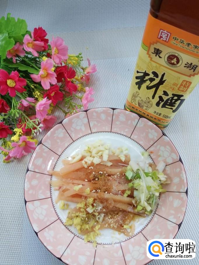 准备适量葱,姜,蒜,将它们洗净后切碎,放入盘中,和鸡胸肉放一起,加入适量盐,鸡精,五香粉,料酒,腌制15分钟。