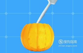 然后在南瓜的顶上挖一个洞,注意,洞的大小需要比自己的拳头大。