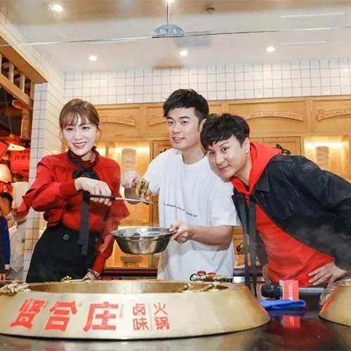 贤合庄,由福州长乐籍演员陈赫、南平籍歌手叶一茜与主持人朱桢,三个明星合伙投资成立的火锅品牌。贤合庄卤味火锅摒弃传统骨汤而开创百年秘方卤汁汤底,其味不减,反增自然鲜香,让传统麻辣火锅,更有滋味更健康。将食材搬上台面,90+种涮菜,采用现代工艺创新,明厨明档,老卤新创,现捞热卤,现点现捞,如同穿梭于街头巷尾的卤味小摊,卤菜卤汁细润,自然香味迷人让食客魂牵梦绕,引领火锅新食尚。