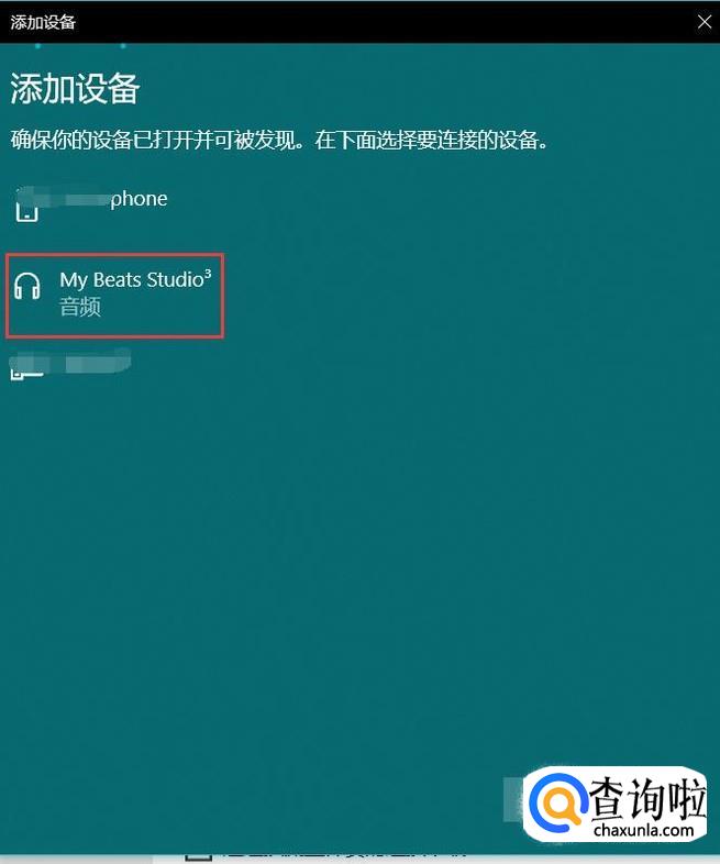 打开蓝牙耳机,让设备处于可连接状态,电脑就会自动扫描到附近的可连接的设备,找到并选中准备连接的蓝牙耳机。