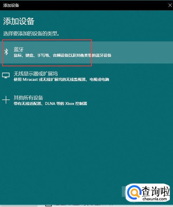 在“添加设备”对话框中选择准备添加的设备类型,这里选择“蓝牙”。