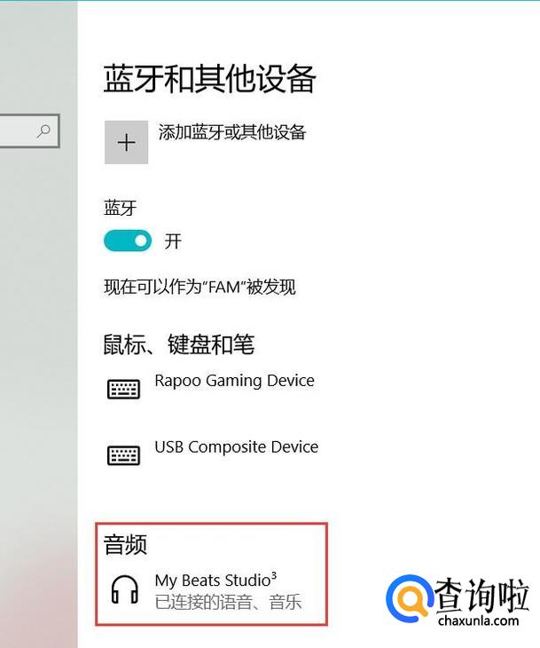 关闭对话框,我们就能在“蓝牙和其他设备”界面中找到刚刚连接的蓝牙耳机了。