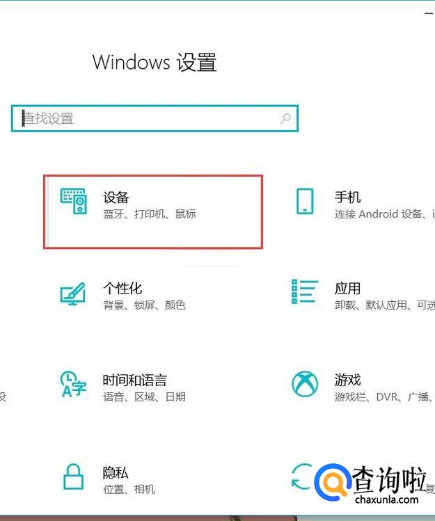 在“Windows设置”窗口中找到“设备”选项。