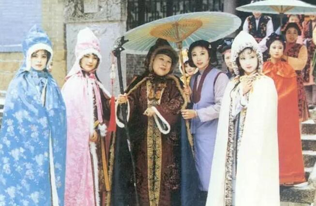 进入清代以后,这种款式成为女子们主要传承的款式,只是相对于明代多了一些清代审美的装饰。由于这种款式在戏曲里也被称作“闺门帔”,所以现在为了区别上面那种“披风”管这种披风叫做“闺门帔”。现在戏曲里也有这种款式,也叫“女褶子”