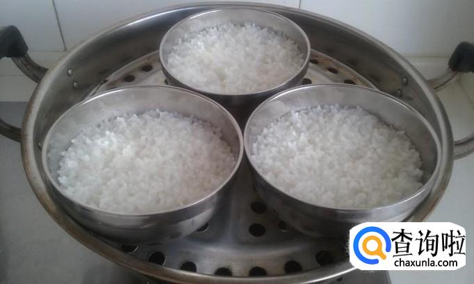 再把盛有大米的碗,放在笼屉上。