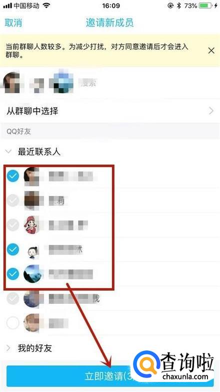 接着选择你要邀请的好友并点击立即邀请,如下图所示。