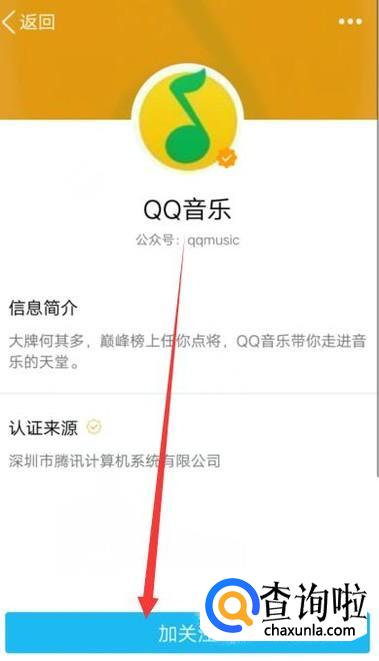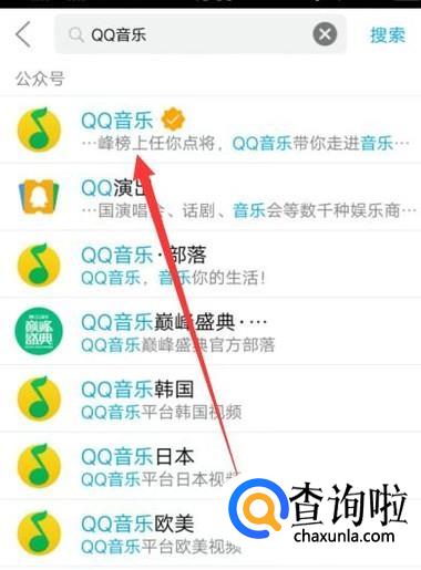 以QQ音乐公众号为例,切换之后,搜索QQ音乐,点击并进入,如图所示。