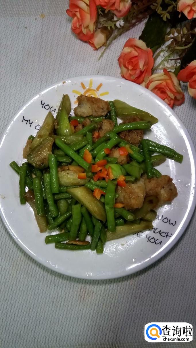将焯好水的豆角放入锅中和丝瓜一起翻炒,豆角本来已经熟了,所以不用再炒太长时间。