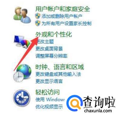 进入控制面板界面后,我们找到外观和个性化,如下图所示。