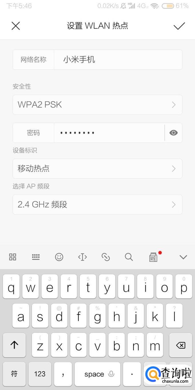 点击进入“设置WLAN热点”选项就能设置WIFI热点的密码,防止热点被其他设备随意连接。