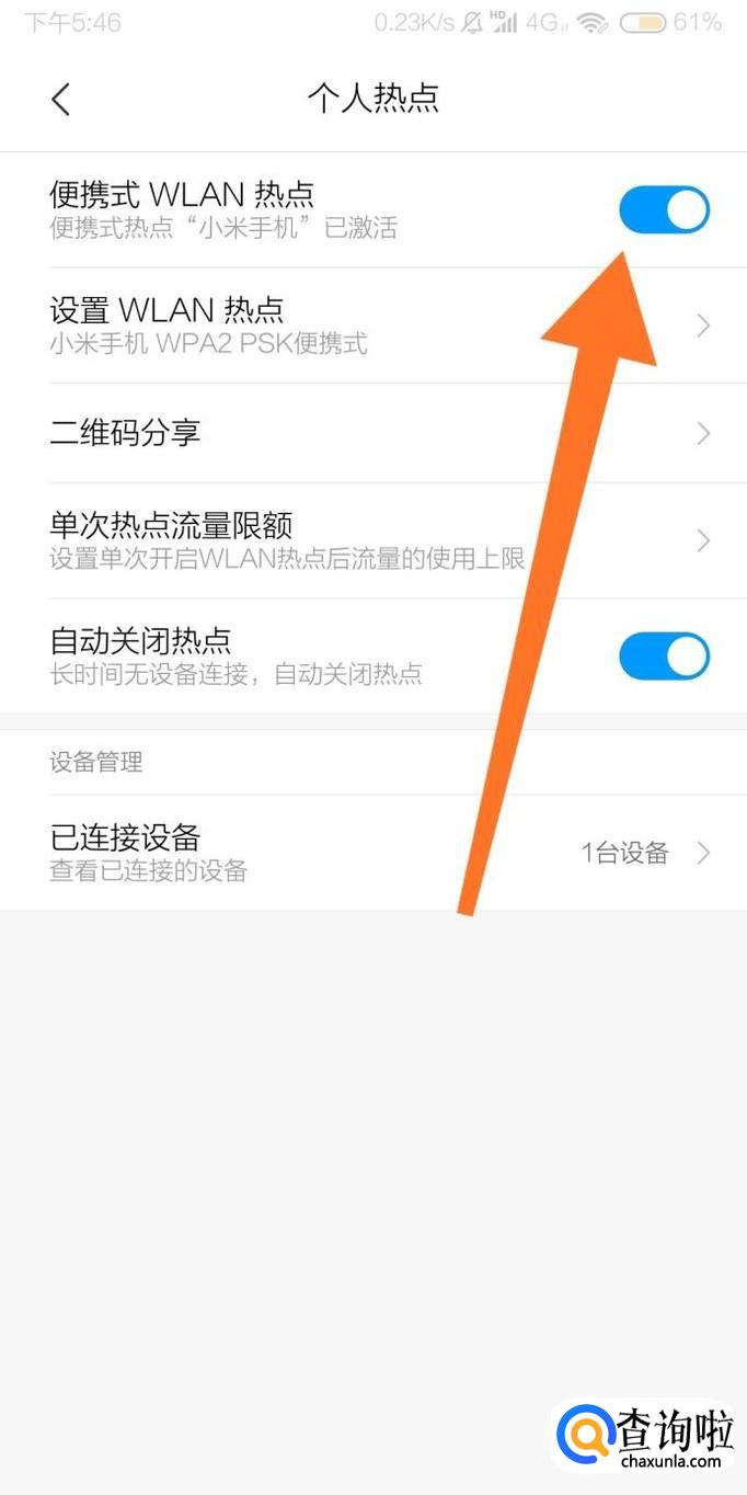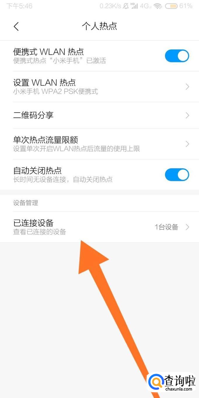 还可以点击进入“已连接设备”选项,查看热点是否被其他设备成功连接。