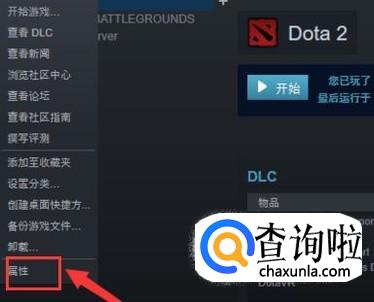 安装好后左边栏位置会有你添加过的游戏,右键点击dota2,选择属性。