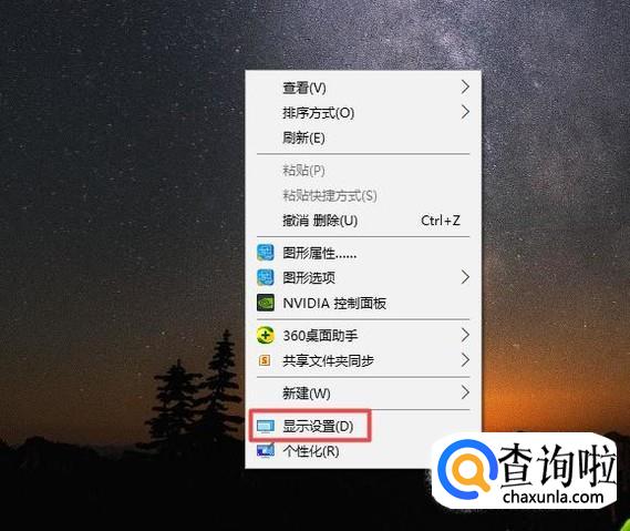 首先,我们右击电脑桌面的空白处,弹出的界面,我们点击显示设置;