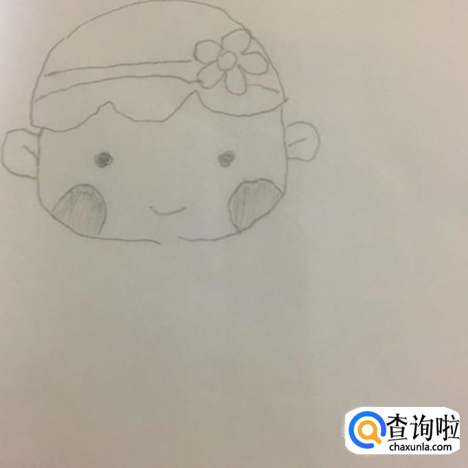 然后快出小女孩的脸蛋和耳朵,如下图所示。因为小女孩比较胖所以画的圆一点会比较好。