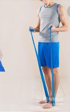 单脚踩住拉力带,双手抓住拉力带的两端,身体放松。