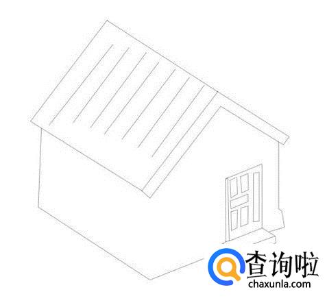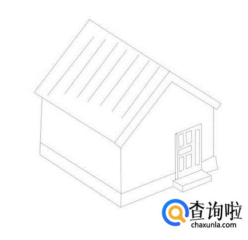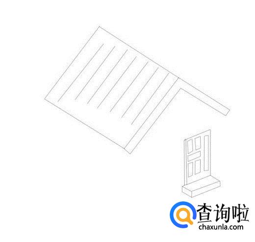 再在屋顶的右侧我们再画出房子的门,并在们的前面画出台阶,如图所示: