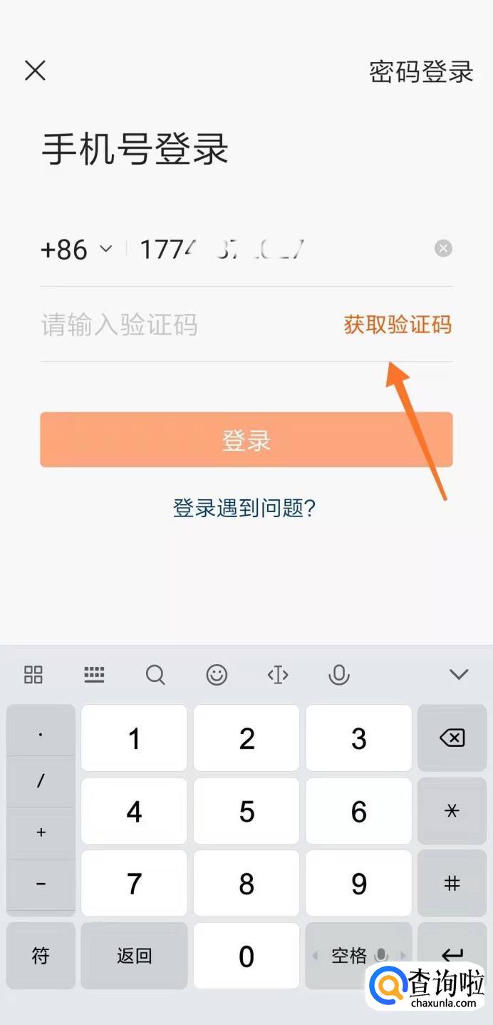 如图所示,输入自己的手机号,点击获取验证码。