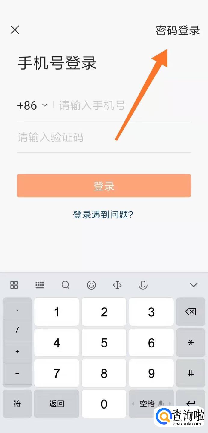 点击右上方密码登录。