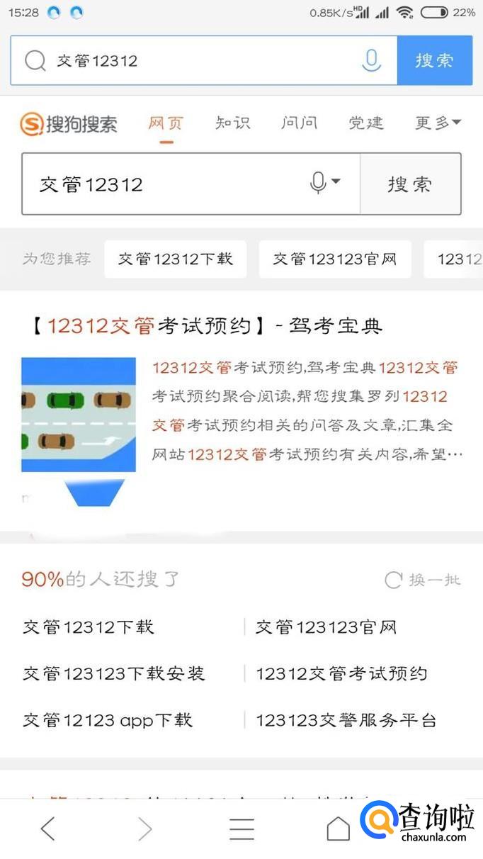 首先打开任意浏览器或者应用商店下载“交管12123”,并安装好。