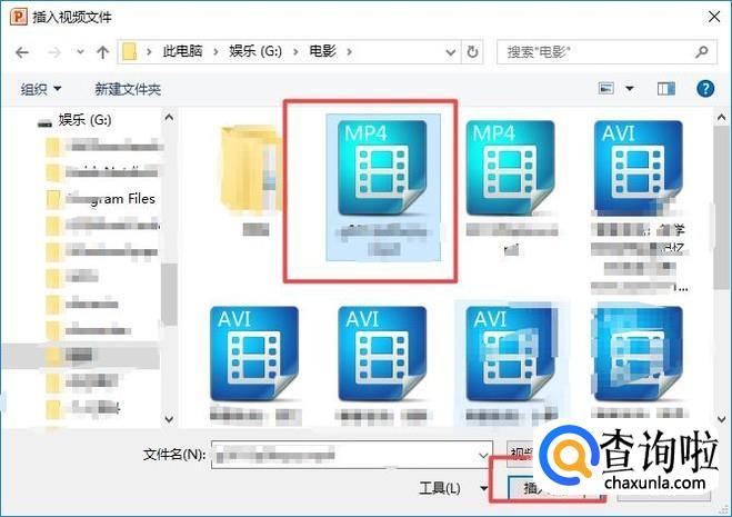 弹出的界面,我们点击选择一个视频,之后我们点击插入就可以了。这样我们就在ppt中加视频了。