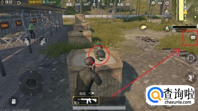 进入游戏后,将准星对准所要标记的物资后,点击右侧小地图下方的“消息栏”选项。