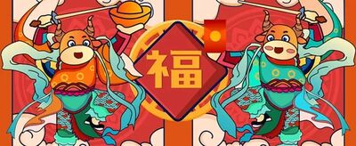 4、新年有新貌,福禄寿喜财。福禄能双至,家和笑颜开。寿比南山松,喜气忙添彩。财源亦广进,牛年好运来!
