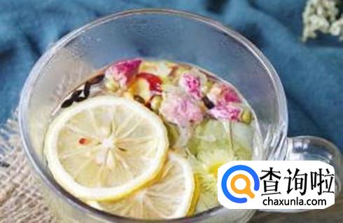 取干荷叶放入杯子里,用开水冲开,等到水温适中的时候,把腌制过的柠檬片放入水中即可。