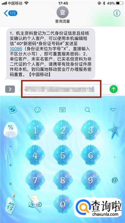 然后输入40*新密码*身份证号#并点击发送,如下图所示