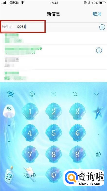 接着输入10086,如下图所示