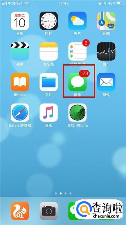 首先在我们的手机桌面上找到信息并点击它,如下图所示。