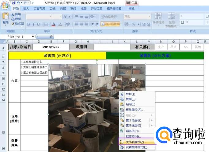 图片就被我们粘贴进来了,此时,我们进行右击,选择大小和设置;