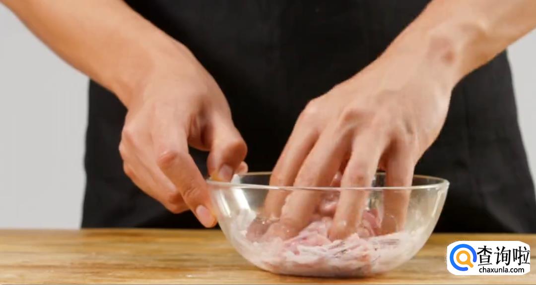 加入生抽,姜汁,盐,糖,淀粉,用手抓均匀。