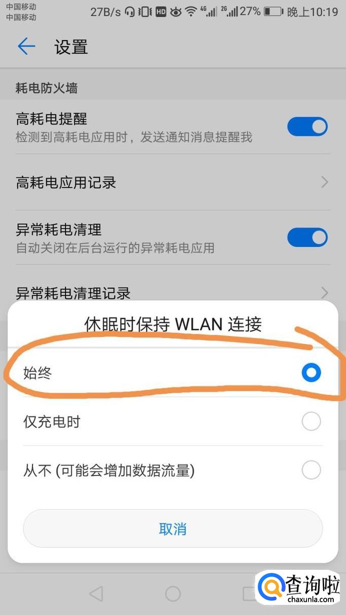 大部分手机锁屏休眠后自动断网的方法都类似。