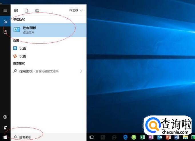 启动Windows 10操作系统,如图所示。搜索框输入"控制面板",点击"最佳匹配→控制面板"项。