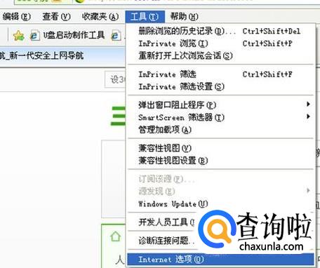 如果别的浏览器使用正常,就是IE浏览器设置出现问题,我们把它重启一下即可。打开IE浏览器,在上方点击“工具”—“internet选项”。