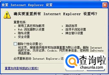 在重置设置里,把“删除个性化设置”前打钩,然后点“重置”,完成后重启浏览器就可以了。